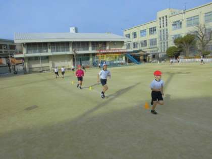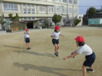 体育科の学習で、「ゆっくりかけあし」と「大なわとび」に取り組みました。「ゆっくりかけあし」では、5分間同じ速さで走り続けることを目標にがんばっていました。「大なわとび」では、3人グループでゆうびんやさんに挑戦しました。大なわとびは縄を回す人と跳ぶ人が息をわせることが大切です。特に、縄を回すことに苦労していましたが、練習を重ねるごとに上達し、10回連続跳べるグループが増えました。体育科での「ゆっくりかけあし」と「大なわとび」の学習は終わりましたが、寒さに負けずに積極的に体を動かして、元気に冬を過ごしてほしいです。