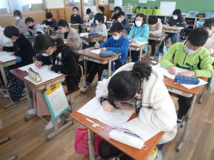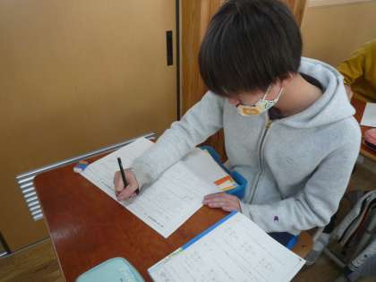 算数の学習で取り組んだ「場合を順序よく整理して」の復習プリントをしました。少しずつ解き方にもなれてきています。たくさん問題を解いて、力をつけてほしいです。
