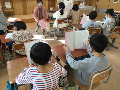 今日は完成した「あそび大じてん」を読み合いました。知らない遊び、やってみたい遊びがたくさん見つかりました。これからもたくさんの本を読み、本の面白さを知っていってほしいと思います。