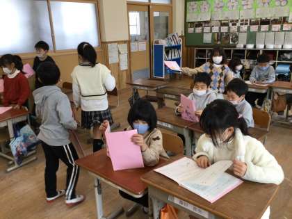 「おにごっこ」の学習では、遊びに関する本を読んで「あそび大じてん」をつくりました。たくさんの本から必要な部分を正確にメモにとり、辞典を完成させることができました。