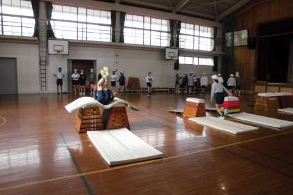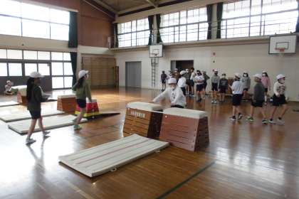 体育では、持久走が終わり、跳び箱運動に入りました。