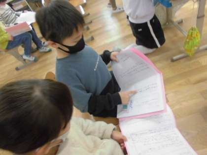 国語科「おにごっこ」の学習では、教科書の文章を読んでいろいろなあそび方のおにごっこを体験しました。いろいろなあそび方のおもしろさを感じながら学習を進めることができました。また、図書室にあるあそびが載っている本を読んで、みんなでやってみたい遊びを選び「あそび大じてん」にまとめました。完成した「あそび大じてん」を手に、友達と楽しそうにあそびを紹介し合っていました。