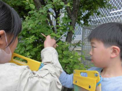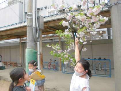 4年生は理科室の使い方を確認した後、運動場で自然を探すフィールドビンゴをしました。