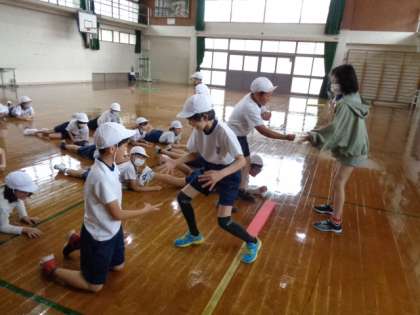 5年生は体ほぐしの運動をしました。