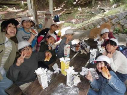 すがすがしい天気の下、朝の集いを済ませたら今日の朝食はパックドッグです。