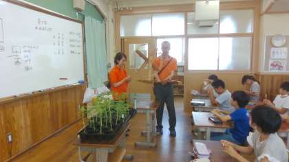 6日(木)に武田薬品さんに来ていただき、植物について教えてもらう授業の2回目を行いました。前回行った綿から糸づくりの質問に応えてもらいました。