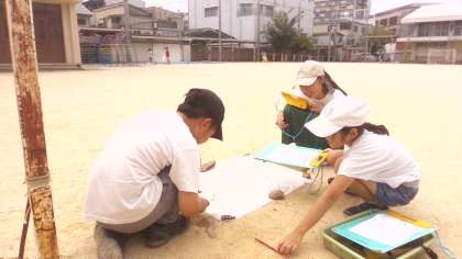 「運動場でいつも水たまりができているところがあるけど、水たまりの水はどこに行くんだろう?」と尋ねると「運動場にしみこんでいく」「溝に流れていく」「空に飛んでいく」という3つの予想が出ました。