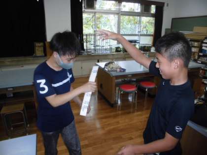 理科の学習では「イカの解剖」「反射神経ゲーム」をしました。中学校の先生がいろいろと工夫して授業をしていただいたので、子どもたちも来年、中学校に行くことが楽しみになったことと思います。また、お家でお話を聞いてあげてください。