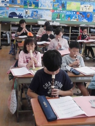 音楽科のリコーダーの学習では、「パフ」と「山のポルカ」の練習をしています。