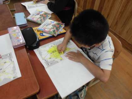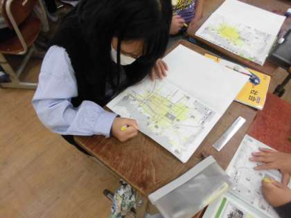 社会科の学習では、京都市のまちの様子が今と昔でどのように違うのかを調べる学習をしています。