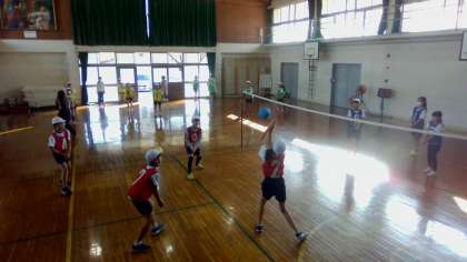 みんなで話し合って「相手コートに返すまでの間に1回だけバウンドさせてもよい」というルールを加えたことで、ラリーが長く続くようになってきました。