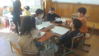国語科の学習で話し合いの仕方を学びました。前回の授業では、「休み時間に何をしているか。」「苦手な学習にどうやって取り組んでいるか。」「弟の誕生日に何をしてあげればよいか。」など、友だちに聞いてみたいことを考えました。今日は4〜5人グループで相談者役と司会役を回しながら話し合いをしました。よい話し方、よい聞き方を意識しながら、話し合いを進めることができました。