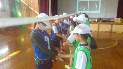 体育の学習ではバレーボールをしています。ちょっとずつラリーが続くようになりました。みんな汗だくです。試合の後に握手をしているのが素敵だなと思いました。