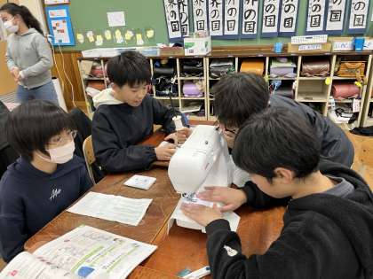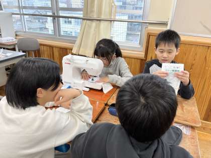 今日は上糸と下糸をいれて、縫いました。曲がるのも上手にできました。今日で練習布は終わり、次からはいざ、ランチョンマットへ!!