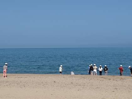 退館式を行いました。子どもたちは、部屋の片づけを終えて、松原荘の方に心を込めてお礼を言っていました。その後、少し時間ができたので、最後の海を楽しみました。