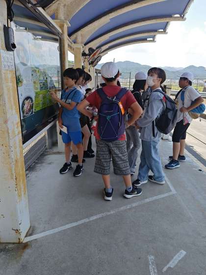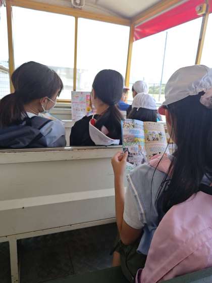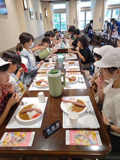 昼食を終えました。カレーライスの上に、長くて大きなソーセージがのっていました。びっくりしながらも、パクパクおいしそうに食べていました。この後、シャトルバスに乗って、コアラ館に向かいます。