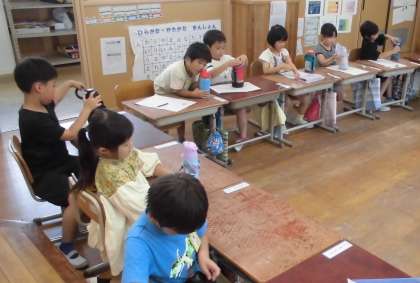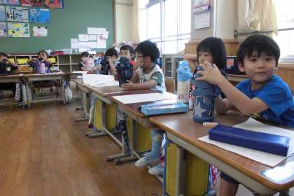 学活では、学級会をしています。学級で困っていることや、話し合いたいことを出し合って毎回議題を決めています。この時間は、水筒の置き方でした。最後に水筒の置き方を確認し合いました。来週からもきちんと置けているか楽しみです。