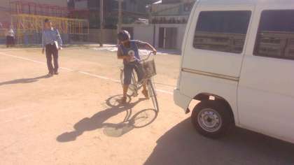 車が停車してある道を通るときは、一度停まって、前方と後方を確認してから自転車で通ることを学びました。急に扉が開いて、車に乗っている人が降りてくる可能性もあることも考えながら自転車で走行しました。