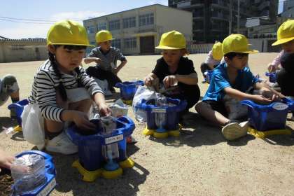 あさ、アサガオのたねさんから、お手紙が届きました。「あえるのを、とってもたのしみにしているよ。」といった内容でした。お手紙の最後に、「なまえをつけてね」「たいせつにそだててね」「ふかふかのしっとりベットでおねがいします」と合ったので、どういうことか子どもたちと話し合って、実際に植えてみました。かわいいなまえのアサガオたちが芽を出すのを、とっても楽しみにしていました。