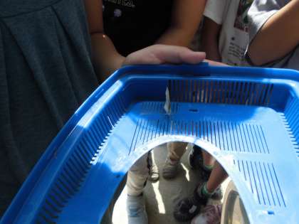 3年生が育てていた蝶のよう虫が、一週間ほど前にさなぎになりました。そのさなぎから、今日、蝶が誕生しました。子どもたちが「先生、蝶になった。」と報告にきてくれました。一日かごに入れておくと羽をいためて飛べなくなるかも、ということで、3年生みんなで逃がしました。なかなかうまく飛べない蝶に、「がんばれ。」「しっかり。」と応援している子どもたちのやさしいまなざしが素敵でした。花にとまらせておきました。きっと、元気に飛んでいくことでしょう。