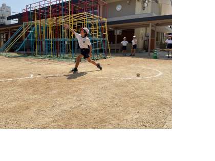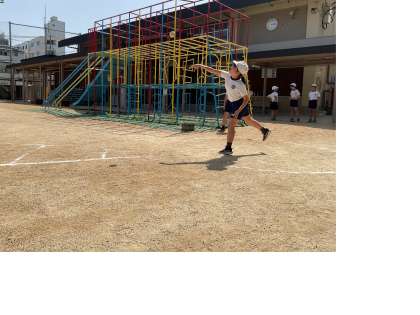新体力テストでソフトボール投げをしました。助走をつけて、力いっぱい投げました。記録がのびて、喜んでいました。