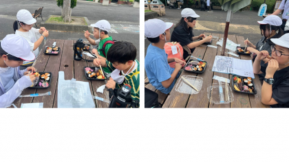 名古屋名物満載のお弁当を青空の下で食べました。