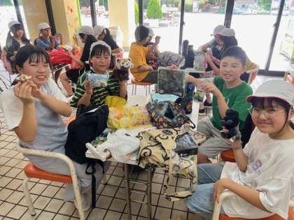 集合場所では、それぞれ見に行った動物の話や買ったお土産を見せてくれました。