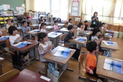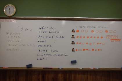 今まではリズムの良い曲ではくをうっていましたが、この時間は「うみ」のゆったりした音楽を使って、はくをうちました。