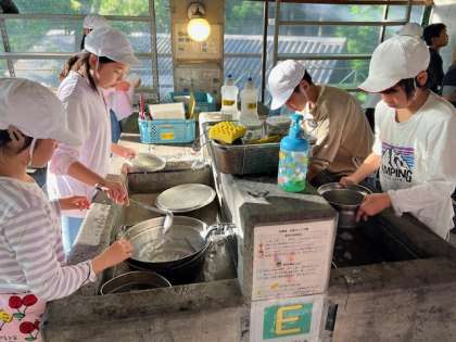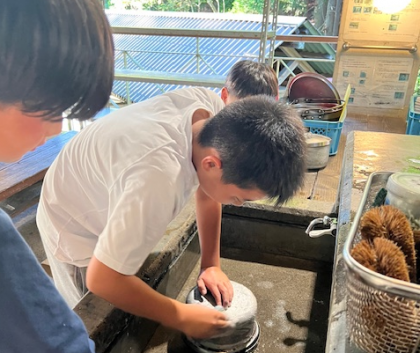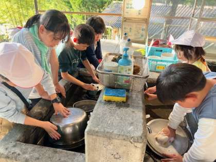 炭で真っ黒になったお鍋を一生懸命磨いてピカピカになりました。
