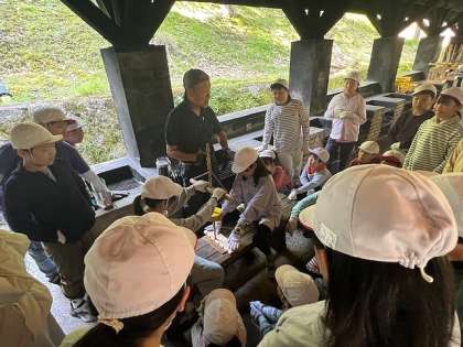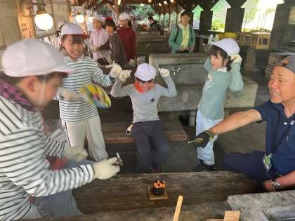 グループで協力をして、火を起こします。