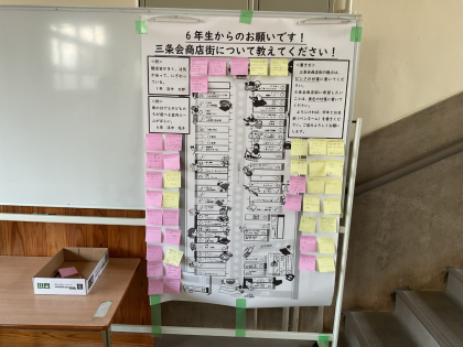 昨日の人権参観、講演会、懇談会にお越しいただきありがとうございました。講演会や懇談会にもたくさんの保護者の方が参加をしていただきました。また、6年生の総合的な学習で行っている三条会商店街の魅力についてもたくさんの付箋を記入していただきありがとうございました。今後の学習で生かしていきます。お忙しい中、ご協力いただきありがとうございました。