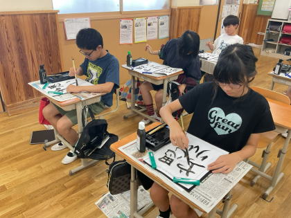 人権参観にあわせて、書写の学習で「思いやり」を書きました。漢字と平仮名の両方を書くことで配列や文字の大きさ、点画のつながりに気をつけて書きました。みんな、集中して気持ちを入れて、丁寧に書くことができました。