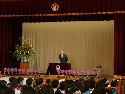 長年にわたって洛中小学校の学校医・健康管理医を勤めていただいた坂中先生が今年度末をもってその役職をご退職されます。そこで,お世話になった坂中先生に感謝の気持ちを伝える会を行いました。「努力を積み重ねること」「健康安全がとても大切であること」「思いやりの気持ちを持つこと」など,子どもたちに静かに語っていただきました。ありがとうございました。