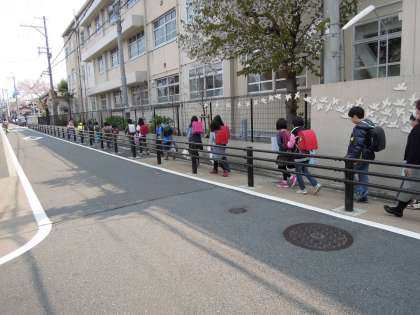 本校は集団登校はありませんが,近所で誘い合って登校しています。上の学年の児童が新1年生を連れてきてくれる朝の登校風景は優しさがあふれていて素敵です。地域,保護者の方が安全を見守っていただいているおかげで安心して登校できます。今日は名簿の確認と集団下校の練習をしました。