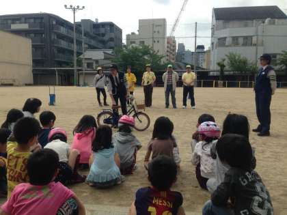 2年生は自転車の乗り方を教えていただきました。「左から乗る」「右後ろを見てから発車。」「ブレーキは四本の指で二つとも握る。」「ペダルに右足,地面に左足を置いて止まる。」など実際に自転車を使って練習しました。教えていただいたことを守って安全に乗ってほしいと思います。教業・乾両交安協の方々は午前中,お手伝いいただきました。ありがとうございました。登下校の見守りもご協力いただいています。これからもよろしくお願いします。