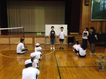 中京中学校と朱雀第一小学校の育成学級の方を招いて,小中交流会を行ないました。自己紹介をした後,椅子取りゲームをしました。