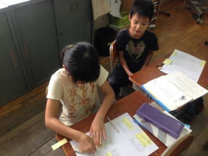 本校は国語科を通して「考えを深める子」の育成に取り組んでいます。まずは書かれていることを読み取る力,自分の考えをもち,友だちに伝える事のできる力をつけたいと考えています。日々の授業はもちろんですが,教員同士が授業を見合い,指導者をお招きして,取組を高めあえるように研修しています。3年生が「ありの行列」という説明文を読み,初めて知ったこと,驚いたこと,人に教えたいことなどを中心に感想文を書きます。付箋を使ってペアの友だちに自分の感想を伝える学習をしていました。