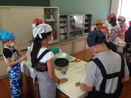 6年生は総合学習でグループごとに外国の食文化を調べました。その後,その国の料理を作ることになり,計画をたてていました。グループで相談して3つの料理を手際よく調理していました。出来上がったものはみんなでバイキングして少しずつ味見していました。興味関心が広がって,また自分で作ってみようと思ったのではないでしょうか。