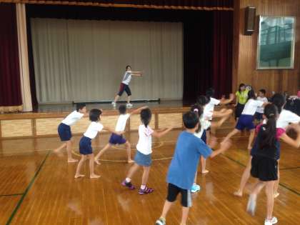 高学年は運動会の係り活動もがんばっています。中間休みを利用して,ダンス係が練習していました。全校ダンスをみんなに教えるため,一足先にマスターしておくためです。すぐにポイントの動きを覚えて楽しそうに練習していました。