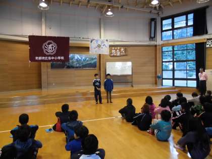 朝の集いでは、小栗栖宮山小学校の友達と互いに学校紹介を行いました。みさきの家の先生からは、「深谷水道」についての話を聞きました。琵琶湖疏水の学習とも関連する話でした。