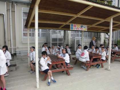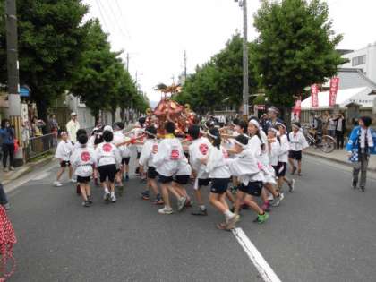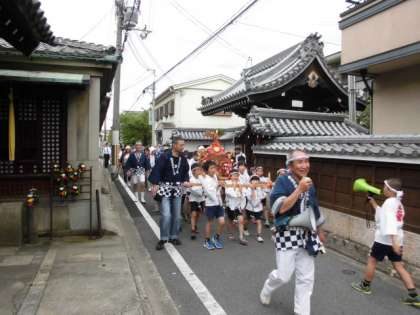 途中洛中小学校,三条大宮公園,元教業小学校で休憩を取り,無事元気に巡行が終わりました。午後からはお稚児さんの行列もありました。家の前に出て,笑顔で見送ってくださる方も多く,地域に根付いている行事であることを実感しました。