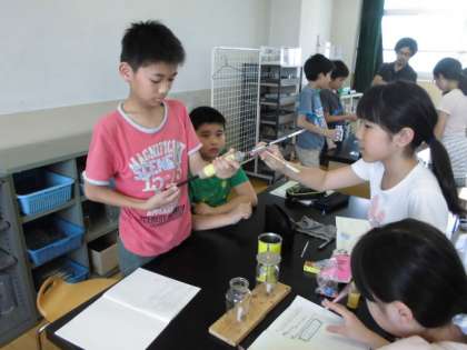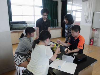 酸素,二酸化炭素という言葉を知ってはいるものの,きちんとした言葉でまとめるのはとても難しいです。器具も高価なので慎重に実験していました。