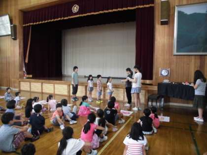 また,6月の「ドラキュラ鬼ごっこ」の表彰があり,1,2、3、6年が同数で表彰をうけました。