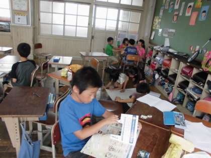 国語の学習で壁新聞を作っています。先日校外学習で行った東北部クリーンセンターのことをグループで話し合って,分担を決めたり,みんなで共同したりして作成します。インタビューなども計画しているようです。ご家庭でインタビューがあったらぜひご協力お願いします。