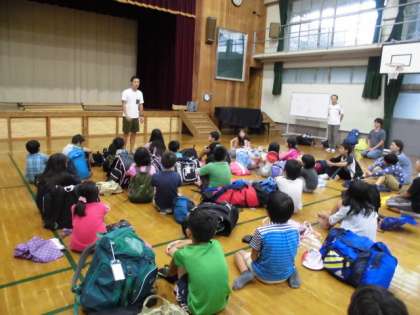 予定より30分ほど早く学校に帰ってきました。解散式では3日間で話を聴く態度が向上したことや自分で予定を考えて動けるようになっていったことをほめてもらいました。これをこれからの日常生活に生かせるよう自分の成長を言葉で言えるように考えてくるのが宿題です。さようならをしてから大雨になってしまいましたが家までしっかりたどり着けたでしょうか。
