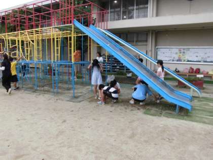 早く終わった係から総合遊具の周りの草引きや運動場の石ひろいをしてくれました。運動会まで約一か月。けがや病気のないように準備していきたいです。