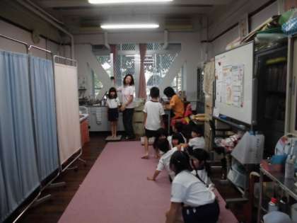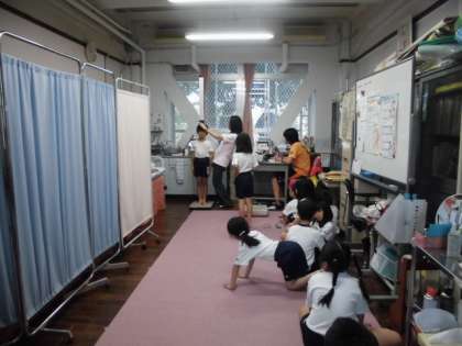 夏休みあけの身体測定をしていました。9月は身長と体重を測ります。大きくなったかな?