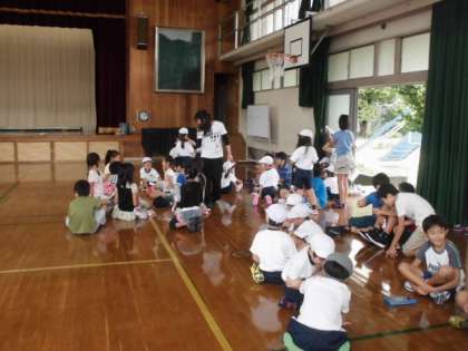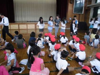 今年度は綱引きが全校種目になったため,「大玉送り」か「リレー」のどちらかにエントリーして出場することになりました。大玉送りは6年と1年,5年と2年,3年と4年のペアを基本にして二人一組で大玉を転がしてリレーします。今日は一回目の集まりでした。みんなでペアを決めました。来週には休み時間を利用して練習します。