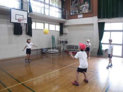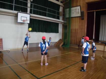 体育の学習でソフトバレーボールに挑戦中です。3回で相手コートに返せるようチームでも練習しています。技術面はもちろんですが,話し合い,考えてプレーするよう指導しています。