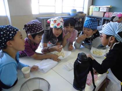 余ったコーンは,ほしい人に後日お渡しします。ぜひ,ご家庭でも作ってみてください。
